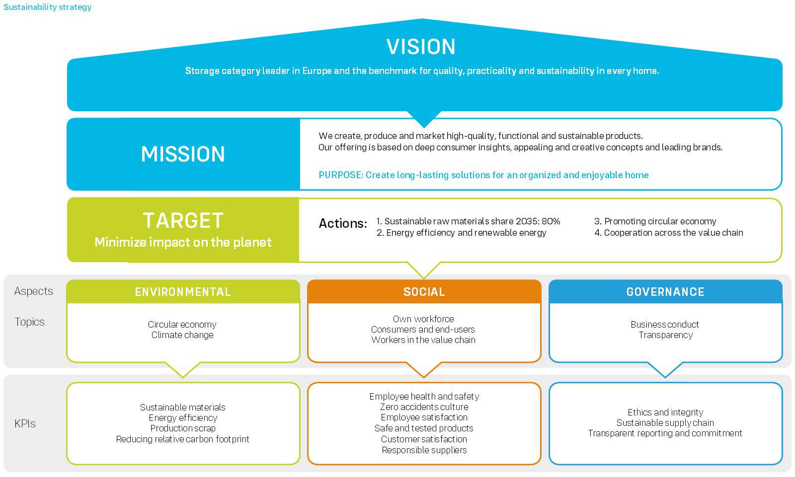 Sustainability is a core element in implementing Orthex’s growth strategy and key objectives as we strive to be the storage category leader in Europe and the benchmark for quality, practicality and sustainability in every home. In our decision making, we consider environmental aspects proactively.